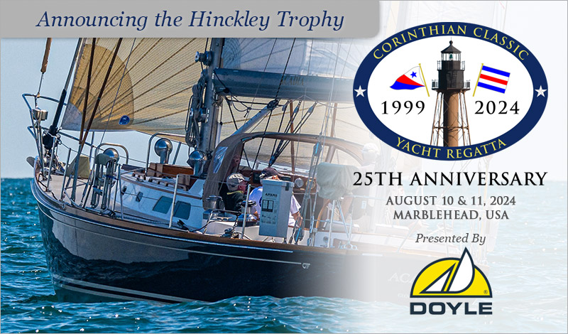 The Hinckley Trophy is awarded to the best overall performance by a Hinckley Yacht in the Corinthian Classic Yacht Regatta. The 2024 Corinthian Classic Yacht Regatta - presented by Doyle Sailmakers - will be held August 10th & 11th.